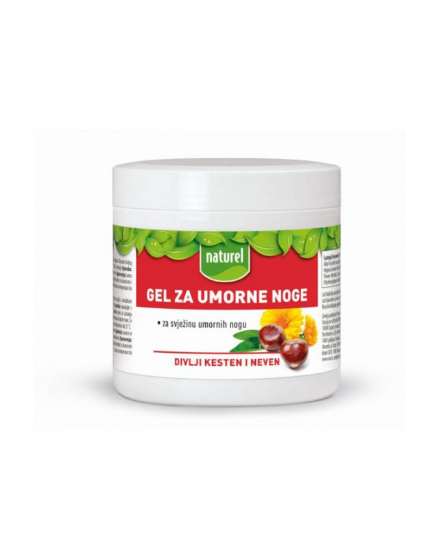 Gel vraća svježinu umornim i teškim nogama. Ekstrakt divljeg kestena i nevena u gelu blagotvorno djeluje na kožu, lagano hladi i umiruje. Uporaba: nanosi se na noge laganim kružnim pokretima, nekoliko puta dnevno. Upozorenja: samo za vanjsku primjenu. Nije za djecu mlađu od 6 godina. Izbjegavati kontakt sa sluznicom i otvorenim ranama. Ukoliko se pojavi iritacija, prekinuti uporabu. Sastojci (INCI): Aqua, Acrylates/C10-30 Alkyl Acrylate Crosspolymer, Propylen Glycol, Aesculus Hippocastanum Seed Extract, Calendula Officinalis Flower, Menthol, Camphor, Ethanol, Phenoxyethanol, Ethylhexylglycerin, Sodium Hidroxide, CI14700. Čuvati na temperaturi do 25 ˚C, izvan dohvata djece.