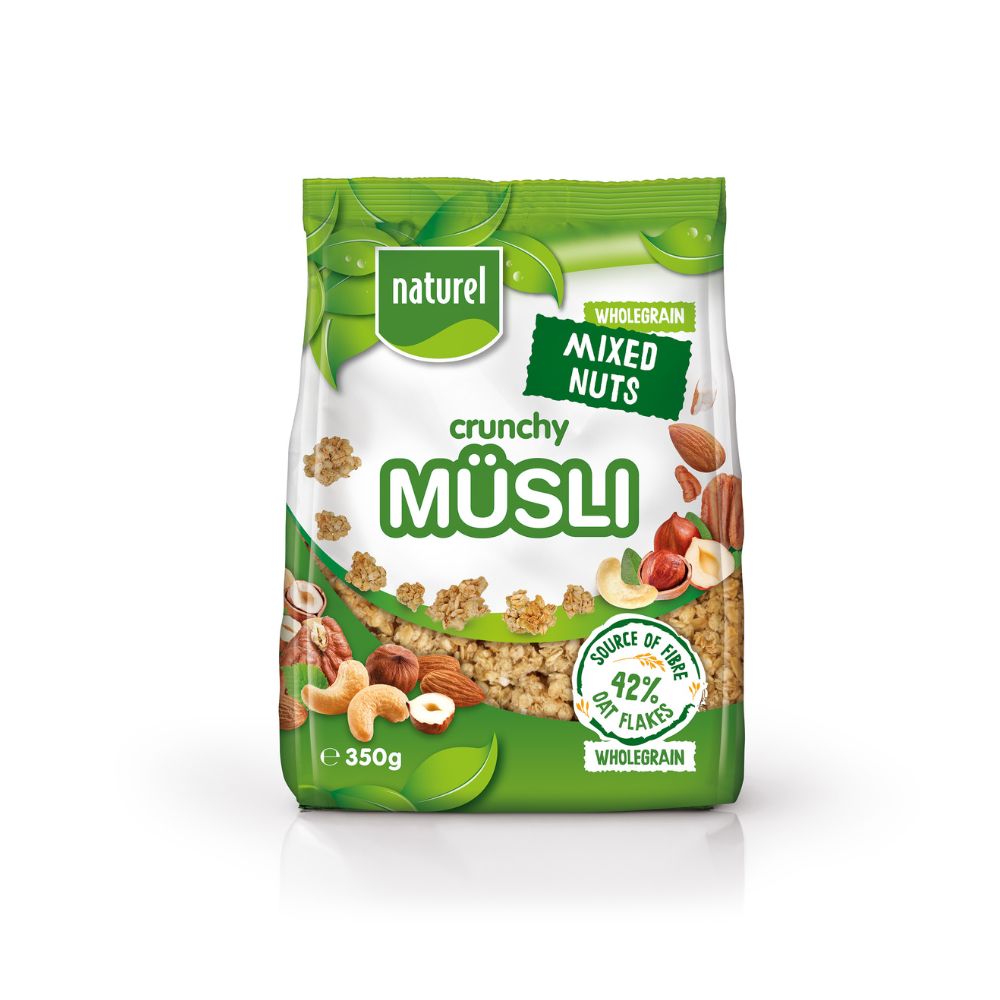 Naturel Wholegrain Crunchy Mixed Nuts (350 g) su ukusna mješavina hrskavih orašastih plodova, bogatih vlaknima i hranjivim tvarima. Ovaj proizvod je savršen za užinu, dodavanje u salate ili kao dodatak različitim jelima. S prirodnim sastojcima, pruža bogat i zdrav okus, idealan za ljubitelje orašastih plodova.